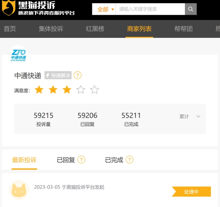 占据快递市场最大份额的中通,在消费者中的口碑却并不如人意,在知名投诉平台黑猫投诉上,中通的投诉量高达5.9万余件,知乎用户@YZC小宝吐槽中通的帖子引来数百点赞,下面回复清一色是吐槽中通的服务质量差,时效性慢等快递行业被诟病的问题。