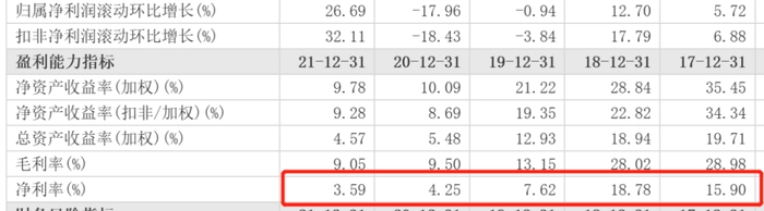 同期,申通快递2017年至2021年近5年的净利率为11.75%、12.06%、6.15%、0.23%和-3.61%,申通快递净利率最高的是2018年的12.06%,但不及中通快递净利率的一半,甚至申通快递的毛利率都不及中通快递的净利率。