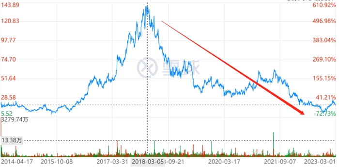 财报一出,微博美股港股双双失守,3月1日美股下跌7.54%报收19.12美元/ADS,3月2日港股大跌逾12%报151港元/股。更令人担忧的是,自2018年来,微博股价就一蹶不振,虽略有起伏,但再也没回到过2018年初的历史最高点,进入2023年以来,股价还在向着上市之初不断逼近,这意味着辛辛苦苦近十年,结果“回到解放前”。