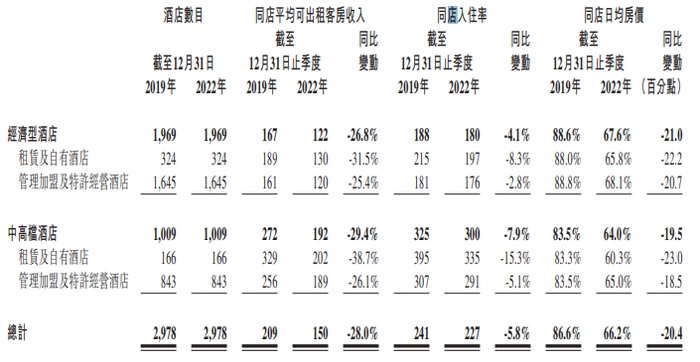 可以看到,除了房价微涨之外,华住集团的入住率和平均客房收入这两大经营指标2022年都出现了下滑。