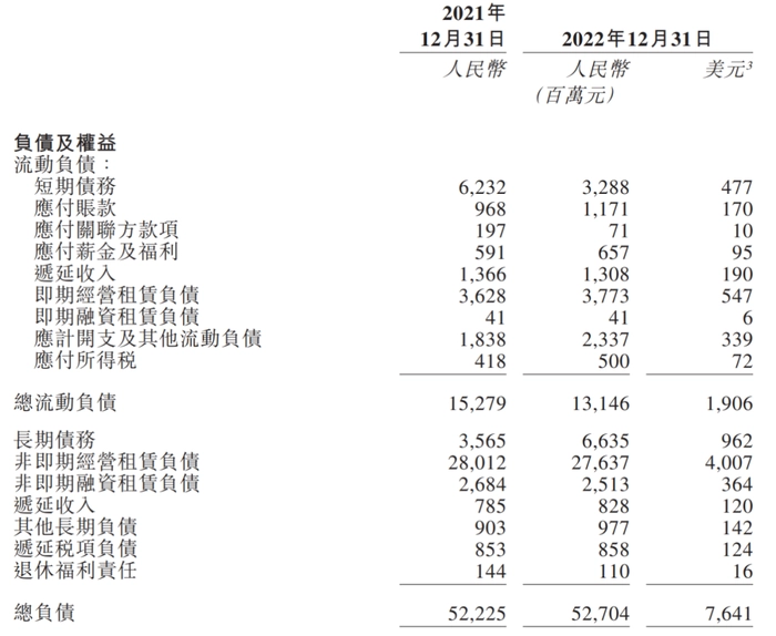 具体来看,截至2022年12月31日,华住集团的短期负债达到32.88亿元,应计开支及其他流动负债达23.37亿元,长期债务则高达66.35亿元,较2021年几乎翻了一番。