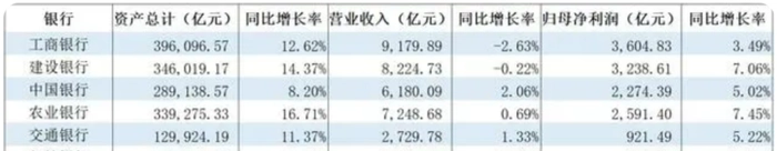 近期国有五大银行均已发布2022年财报,其中营收增幅最高的是中国银行,增幅为2.06%,其中工商银行和建设银行分别下滑2.63%和0.22%,归母净利润增幅最高的为农业银行的7.45%,增幅最低的为工商银行3.49%。