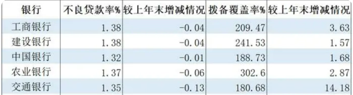 在各家银行都在降不良的情况下,招行的不良率即便只是上升了0.05个百分点,也成为关注的焦点。对不良上升情况,招行在财报中解释称是因为受经济增长放缓及房地产客户风险进一步释放的影响。但和五大行的不良率相比,招商银行的不良率就显得较为“优秀”。下表为五大银行的不良率,最高为工行和建行的1.38%,最低的为中国银行的1.32%,五大银行的不良率均大于1.3%。