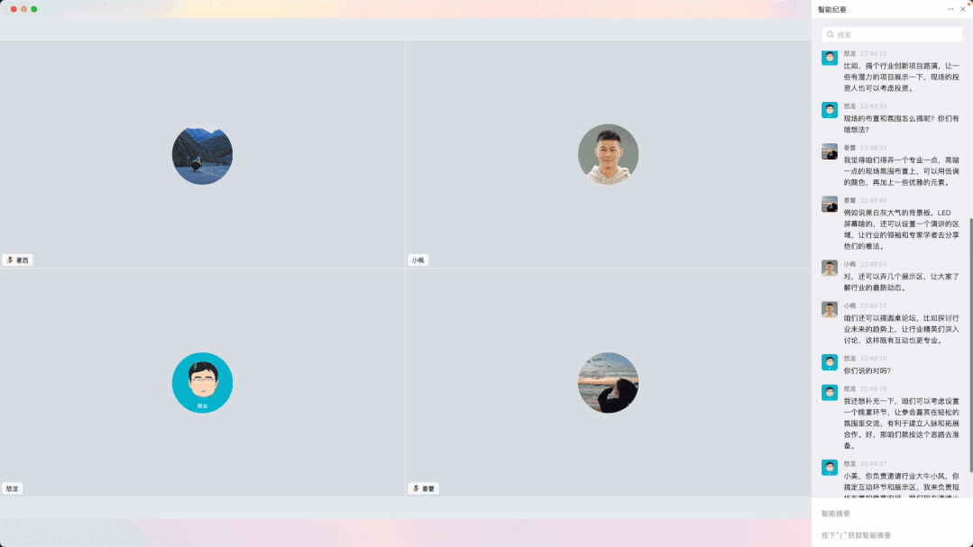 视频会议也支持在会后自动生成重点摘要与待办事项。