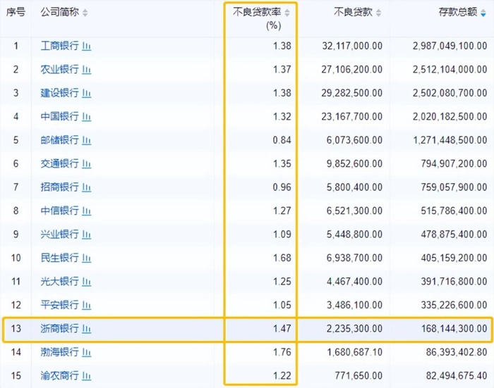 金融行业分析师吕朝伟分析认为,细看渤海银行的财报,除了营收和归母净利润双降之外,最大的隐忧来自1.76%的不良率。浙商银行的不良率仅次于渤海银行,多少亦有些风险。