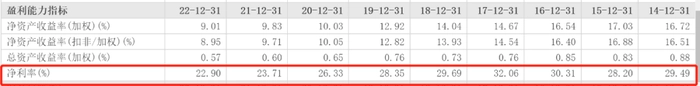 最让投资者一目了然的是浙商银行的净利率的下滑。2022年,浙商银行净利率为22.90%,相比2021年的23.71%下降了0.81个百分点,相比2020年的26.33%更是出现了3.43个百分点的下滑。下表可以清晰反映浙商银行净利率的下滑之势,其净利率已经创下自2014年以来的新低,较2017年32.06%的净利率高点下滑已经近10个百分点。算上2022年净利率的下滑,浙商银行净利率已经“六连降”。