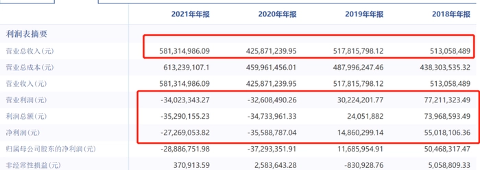 在登陆新三板后,2018年,长峰医院营收5.13亿元,同比增长24.08%。净利润0.5亿元,同比暴增217.80%。每股收益0.35元,同比增长218.2%。但自2020年起,长峰医院陷入长期亏损,2020年净亏损3729.34万元,2021年净亏损为2888.68万元。
