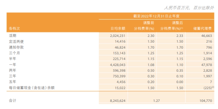 2022年9月,邮储银行发布公告,进行了上市以来首次调整储蓄代理费率。公告指出,自该行2016年H股上市以来,储蓄代理费综合费率逐年下降,从2016年的1.42%下降13个BPs至2021年的1.29%,降幅达9.15%。