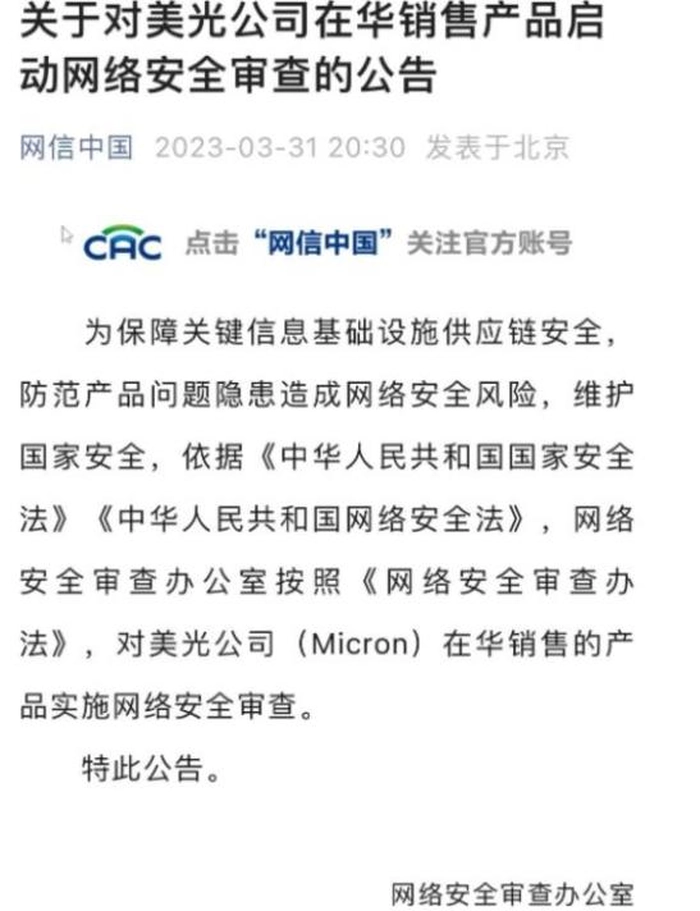 3月31日,国产芯片传来好消息,网络安全审查办公室宣布对美光公司在华销售的产品实施网络安全审查。这次网络安全审查确实给国产芯片的发展带来了利好。