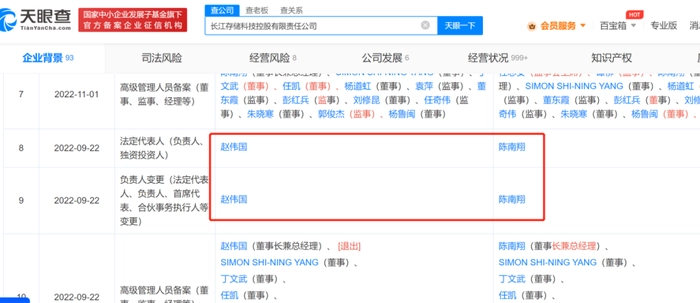 2022年9月22日,紫光集团董事长赵国伟退出董事长兼总经理以及法定代表人,陈南翔接任。