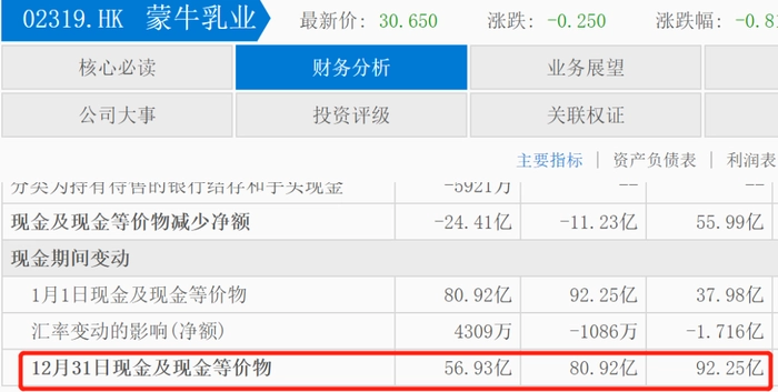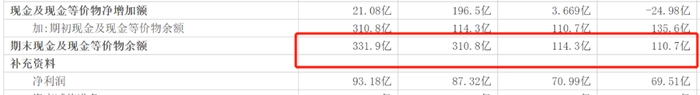 财报显示,2022年12月31日,伊利现金及现金等价物余额达331.9亿元。近三年的现金及现金等价物余额分别为114.3亿元、310亿元和331.9亿元。分别增长了3.31%、171.84%和6.78%。