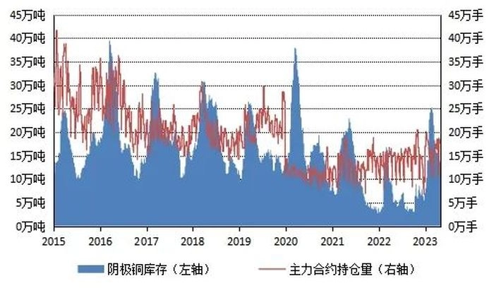 沪铜库存和盘面持仓量 |