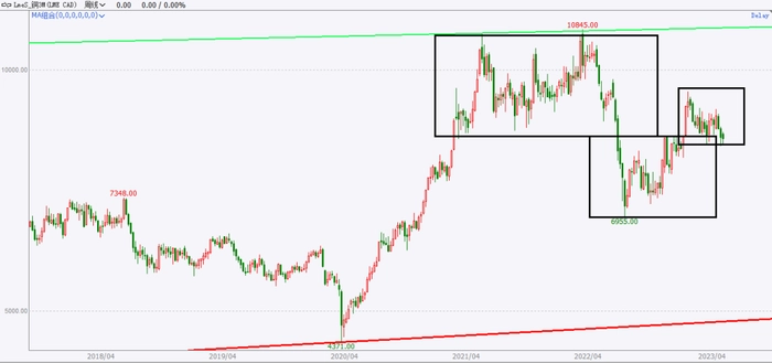 四、铜价处在长期价格区间中部偏高位置