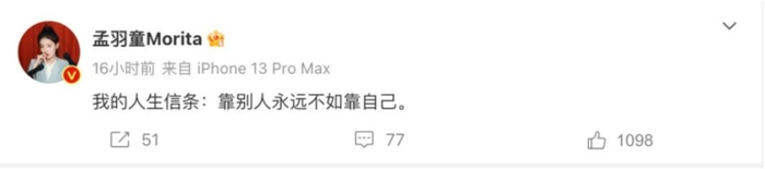 按说,董明珠的知遇之恩,故事应该往孟羽童不断努力最终真的成为“第二个董明珠”的剧本发展,但5月9日孟羽童的一条微博打破了这段看似美好的“师徒情谊”,也几乎是官宣和格力蜜月期结束了。