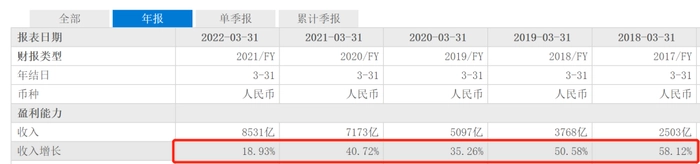 在全面实施中台战略的2018年,阿里巴巴的营收增长高达58.12%,2019年的营收增幅同样高达50.58%。但近三年的营收增幅明显下滑,2022年增幅仅有18.93%,2023财年第四季度的增幅降至2%。