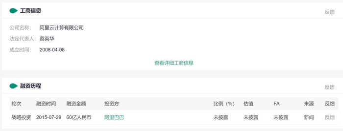 而张勇所说的未来会引进外部战略投资者现在并未披露,烯牛数据显示目前阿里巴巴依然是阿里云唯一的投资者。