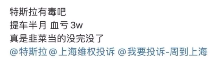 但特斯拉未曾考虑老车主的感受,很多特斯拉车主刚提新车后就遭遇降价,由于降幅太大,很多特斯拉车友的微信群已经开始炸锅。很多特斯拉车主一个月就亏了2万元到4.7万元不等,这些被收割的“韭菜”纷纷找特斯拉维权。