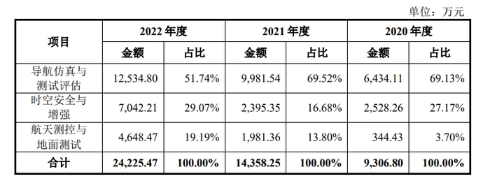 和一般科技公司“小打小闹”不同,北斗院干的可都是“上天入地”的大买卖。目前公司主要围绕的领域是卫星导航和航天测控,在导航仿真与测试评估、时空安全与增强、航天测控与地面测试三大方向开展业务,其中第一个方向的业务贡献了公司过半的收入。