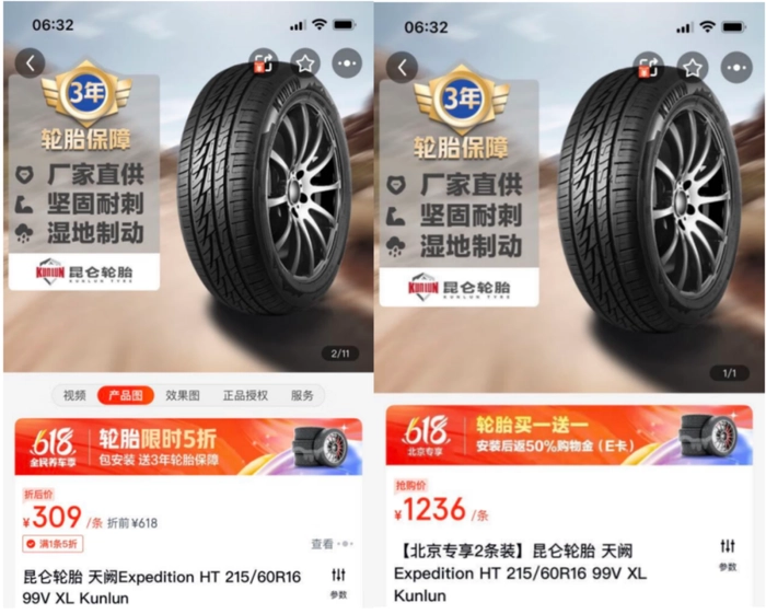 其次,从价格上来看,有的平台并不是真心降价。例如某知名平台,看到京东养车在北京推出轮胎买一赠一后,也搞了个特价轮胎的买一赠一。然而,实际情况却让很多消费者心里不舒服。查看相关页面显示,这家平台上某品牌轮胎在活动开始前是600多两条轮胎,活动开始后围绕该品也主打轮胎买一赠一,但价格却标成折前单条轮胎1200多元。真的是把消费者当傻子,又玩起了促销前先涨价后降价的把戏。