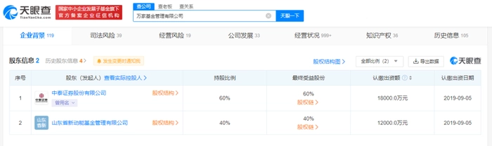 中泰证券对万家基金的“出手”始于2022年中。据公告,中泰董事会于2022年7月12日同意公司受让齐河众鑫投资有限公司持有的万家基金11%股权,对价2.9亿元。万家基金于2023年2月完成的工商变更登记信息显示,中泰证券持有万家基金股权比例为60%。