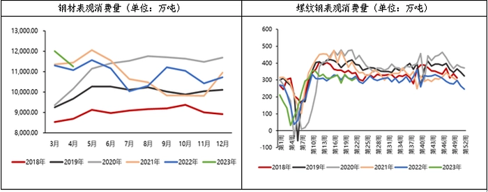 采用自下而上的方法,根据不同行业粗钢消费分布情况搭建需求观测模型来测算粗钢实际需求,预计2023年全年需求为9.43亿吨。假定粗钢产量平控在10.13亿吨,净出口为6000万吨,全年供需格局为小幅过剩1000万吨,行业基本实现供需平衡。