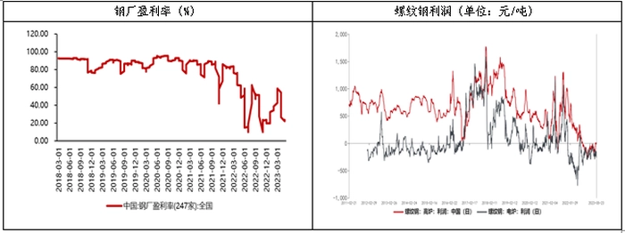 微观层面,钢铁行业盈利空间受到挤压,行业陷入普遍亏损,制约产量增长。春节以来,钢厂亏损面积加大,5月全国247家钢厂盈利率下降至历史低位22.08%,螺纹钢高炉和电炉利润均在盈亏平衡点以下,分别亏损89元/吨和379元/吨,对应的高炉产能利用率仍处于89.93%高位,电炉产能利用率则降至54.83%。