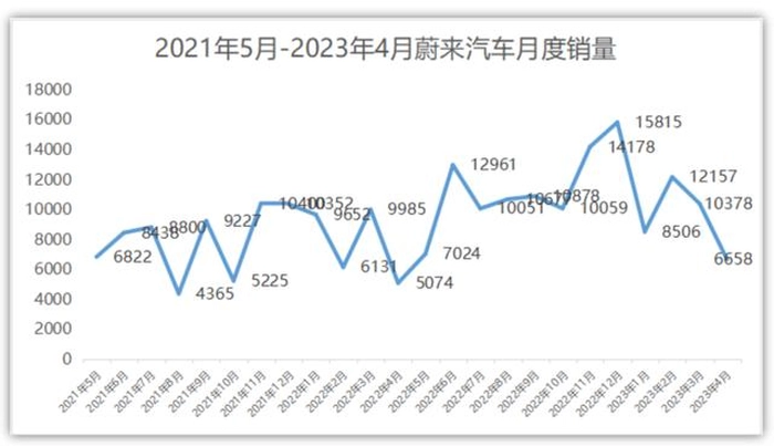 前5月总共销量为4.39万,和李斌所说的24.5万辆的销售目标差距为20.11万辆,剩下7个月,蔚来平均每月需要销售2.87万辆才能完成销售目标,而目前每月销量只有6000辆左右,自2021年5月至2023年4月,蔚来的销量最高为1.58万辆,最低为4365辆,从没有超过或逼近2万辆。这在不作改变的情况下,几乎是不可能完成的任务。