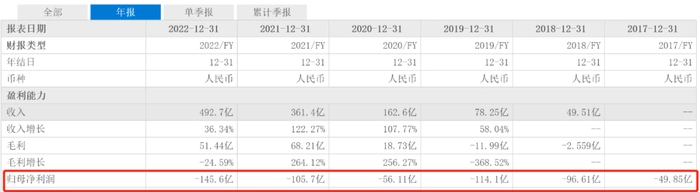 财报显示2018年至2022年蔚来分别亏损了96.61亿元、114.1亿元、56.11亿元、105.7亿元和145.6亿元,上市以来蔚来累计亏损518.12亿元,加上2023年第一季度亏损的48.04亿元,上市后蔚来共亏损566.16亿元,这还不算2017年亏损的49.85亿元,都算上的话,总计亏损已经超过616亿元。