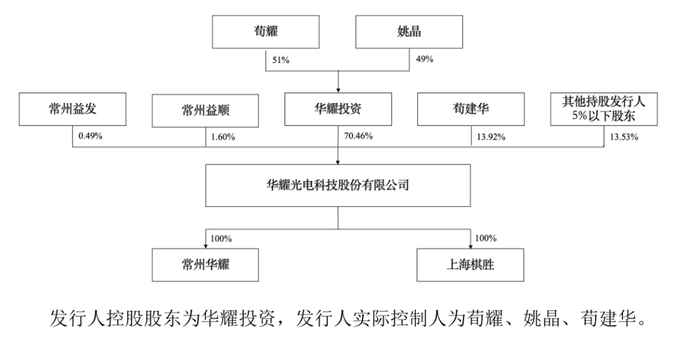 说华耀光电是家族企业可以通过股权来体现,天眼查显示,华耀光电实控人为荀耀、姚晶、荀建华,三人共计持股高达86.48%。其中荀建华直接持股13.92%。其儿子和儿媳荀耀、姚晶持股72.55%。