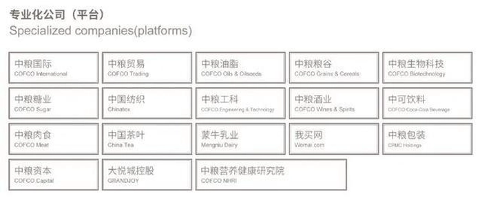 目前中粮集团旗下拥有16家上市公司,其中包括中国食品、中粮糖业、中粮工科、中粮包装、中粮科技、大悦城、蒙牛乳业、大悦城地产、酒鬼酒等知名企业,业务涉及食品、金融、地产等若干方面,以6月26日最新市值计算,中粮集团旗下16家上市公司总市值约2600亿元。