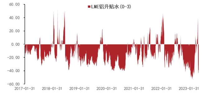 图6:伦铝Cash/3M贴水36.75美元/吨反映现货市场由平衡转向宽松
