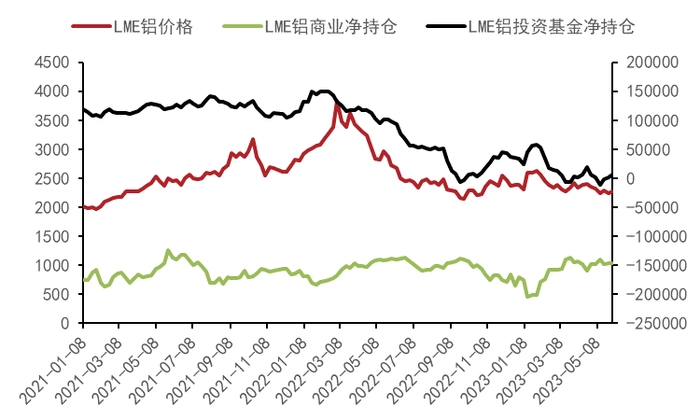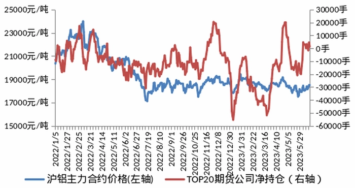 6月15日,沪铝持仓量TOP20期货公司由5月净空头敞口20503手转为净多头敞口1675手。6月2日,伦铝商业机构净持空头头寸146960手,较上月同期空头敞口收窄12895手,投资基金净持多头头寸6709手,较上月同期多头敞口收窄13317手。