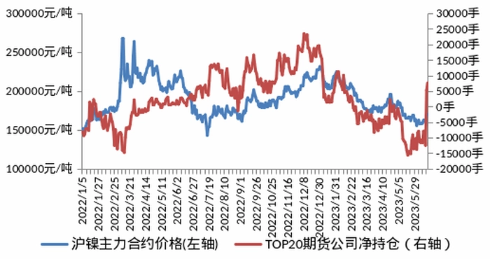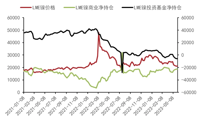 6月,沪镍持仓量TOP20期货公司由5月1.5万手净空头敞口转为6月中旬净多头敞口7727手,6月27日再度转为净空头敞口6159手。6月2日,伦镍商业机构净持空头头寸22788手,较上月同期空头敞口收窄3763手,投资基金净持空头头寸5974手,较上月同期增加空头敞口6955手。