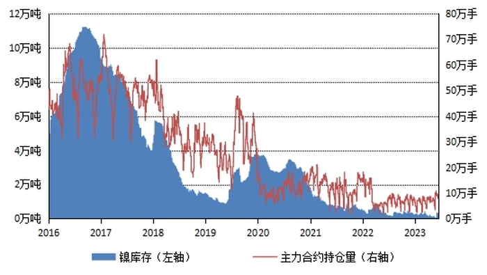 根据五矿经济研究院创立的“至简交易”投资理论体系,期货市场和现货市场拥有各自不同基本面。本栏目聚焦期货市场基本面研究,重点分析期货市场资金博弈与价格走势。6月,多空增仓博弈,国内主力维持少量净空头敞口,国际金融资本增加空头敞口。目前,镍价处在长期价格区间中部偏低位置,短期跌势放缓,但反弹力度偏弱,仍处于探底筑底阶段。