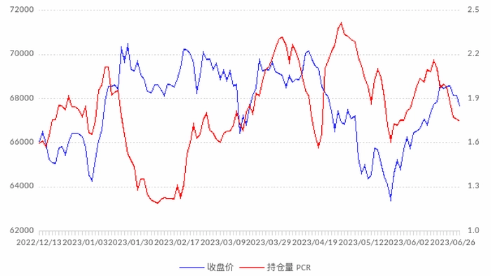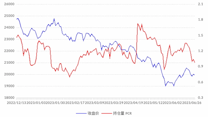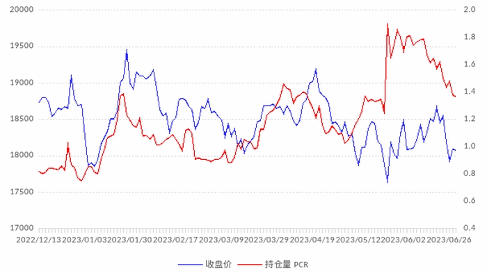 6月卖出看跌期权持仓量先增后减,持仓量PCR低位回升未突破前高,市场看涨情绪回落。6月28日,认沽持仓量45358张,较上月同期减少3942张;认购持仓量25960张,较上月同期减少2707张;持仓量PCR收于1.75,先升后降,期权市场看涨情绪回落。