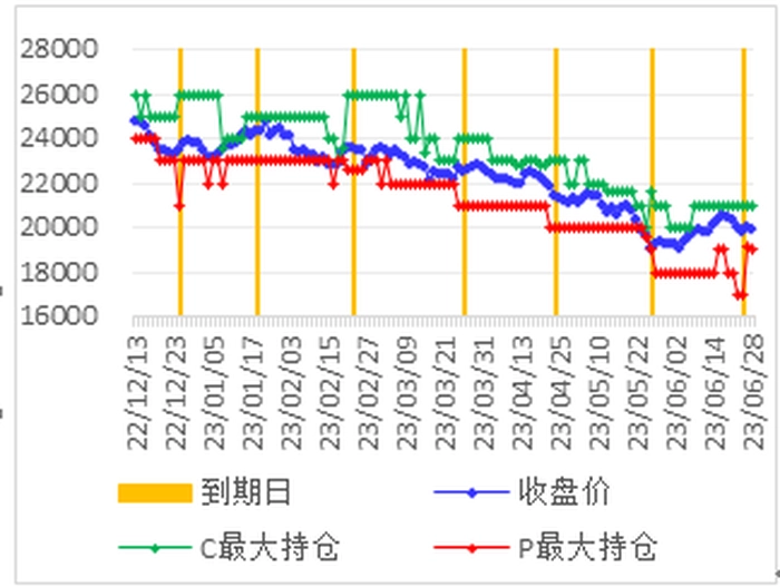 期权市场预期7-8月锌价大概率在19000-21000元/吨运行。从沪锌zn2308期权最大持仓量所在行权价来看,6月28日认沽期权最大持仓量所在行权价为19000元/吨,认购期权最大持仓量所在行权价为21000元/吨,区间下沿由18000元/吨上升至19000元/吨,市场预期7-8月锌价波动范围主要在19000-21000元/吨。