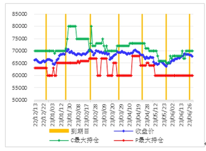 期权市场预期7-8月铜价大概率在60000-70000元/吨运行。从沪铜cu2308期权最大持仓量所在行权价来看,6月29日认沽期权最大持仓量所在行权价为60000元/吨,认购期权最大持仓量所在行权价为70000元/吨,市场预期7-8月铜价波动范围主要在60000-70000元/吨。