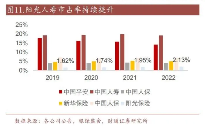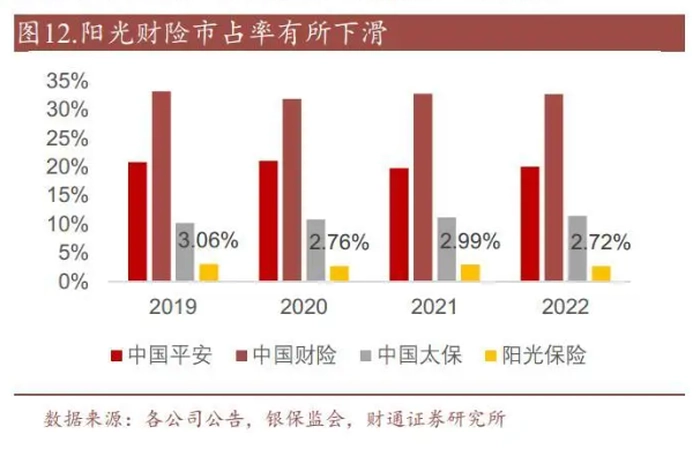 2022年,阳光人寿、财险市场份额一升一降。公司面临的是前有巨头雄踞、后有众安在线( 06060.HK )等行业新秀追赶的竞争格局。