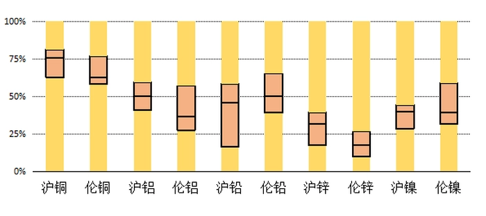 图2:铜在主要有色金属期货价格中所处绝对位置最高
