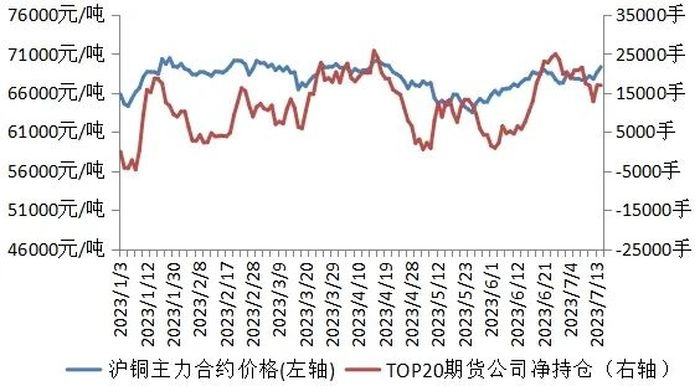 图1:2023年持仓量TOP20期货公司对铜持仓保有多头净敞口