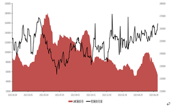 伦铜库存和盘面持仓量 |