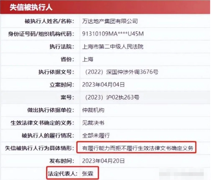 据了解,万达集团因未履行相关义务,公司被列为失信被执行人张霖被限制高消费。此次让万达地产成为“老赖”的地产项目位于广东河源,万达地产想要打造180万平方米中央文化生活区,此次成为被执行人,说明这个项目进展并不顺利。