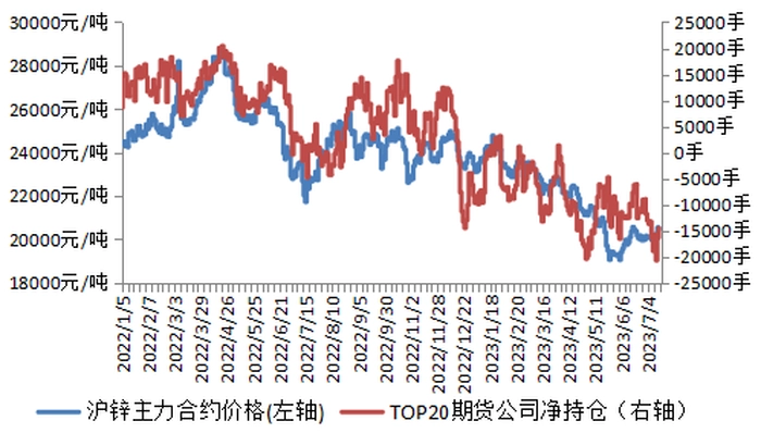 7月14日,沪锌持仓量TOP20期货公司净持空头头寸增至14540手。7月7日,伦锌商业机构净持空头头寸27244手,较上月同期空头敞口增加5061手,投资基金净持空头头寸5823手,较上月同期空头敞口收缩6717手。
