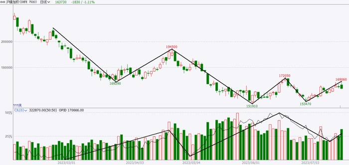 沪镍盘面,6月中上旬多头小幅增仓拉升镍价小幅上涨,6月下旬多头撤离导致价格回落但未创新低,7月中上旬,多头加大增仓力度,继续拉升价格但未能突破前期高点,多空焦灼对峙。伦镍盘面,6月中下旬多头主动减仓带动镍价破位下跌,之后空头增仓进一步带动镍价跌破20000美元/吨,7月上旬多头小幅增仓带动价格缓慢回升。7月14日,沪镍收盘价166200元/吨,较上月同期169950元/吨下跌2.21%;伦镍收盘价21630美元/吨,较上月同期22650美元/吨下跌4.5%。