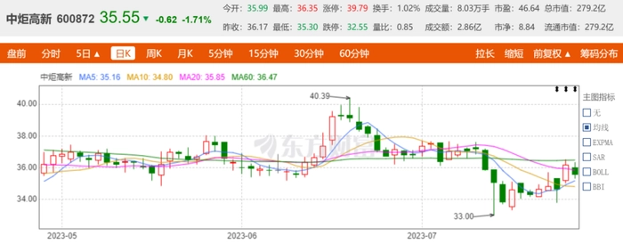 7月22日,中炬高新副总经理秦君雪带队试图换掉保安队未果,宝能系和中炬高新上演了一出跌宕起伏的“内斗”。受此影响,中炬高新股价波动较大,由7月7日的37.49元,跌至26日收盘的35.55元,跌幅近6%。在7日公告后,股价出现了5连跌的惨状。和去年9月82.40元的高点相比,不到一年股价跌去了57%,市值蒸发近370亿元。