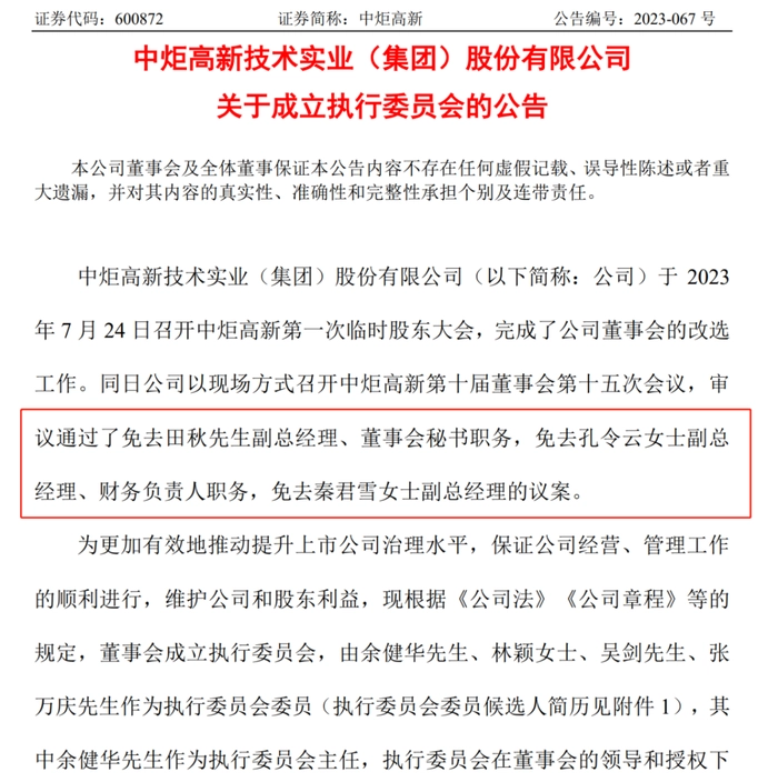 据7月25日中炬高新发布的公告来看,被董事会罢免的几位高层均为姚振华的亲信,为宝能系在中炬高新的高层力量,随着这几位宝能系的被罢免,中炬高新又新任命新的高管。代表宝能系利益的4名董事遭到罢免,火炬系提名的4名董事中的3名当选,中炬高新董事会非独立董事席位由6位降至5位,至此,火炬系拿下中炬高新董事会的全部董事席位(独立董事席位除外),这一决议被众多专业律师解读为合法有效,姚振华反制亦无力扭转“战局”,至此中炬高新全面掌控局面。