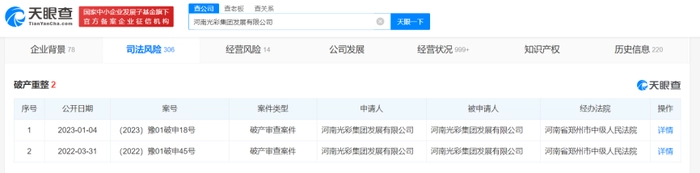河南光彩集团是一家业务分布在公路、桥梁、交通、物流、化工材料、金融等多个产业领域的公司,公开信息显示,从2022年5月至2023年6月,该公司多次成为被执行人、失信被执行人,近年来还两次陷入破产审查案件。