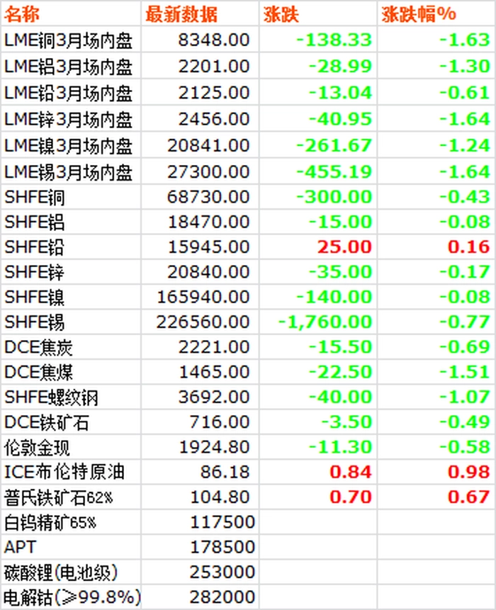 【大宗·期货】8月8日大宗金属交易市场复盘