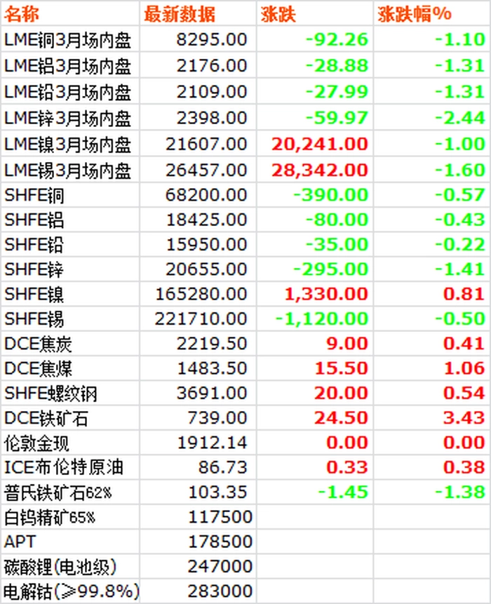 【大宗·期货】8月11日大宗金属交易市场复盘