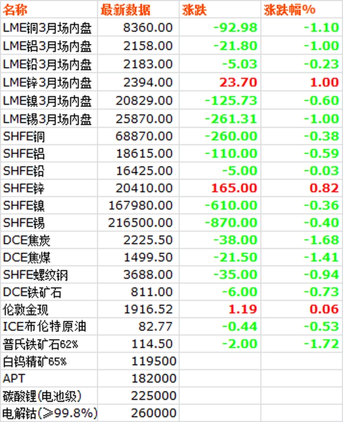 【大宗·期货】8月24日大宗金属交易市场复盘